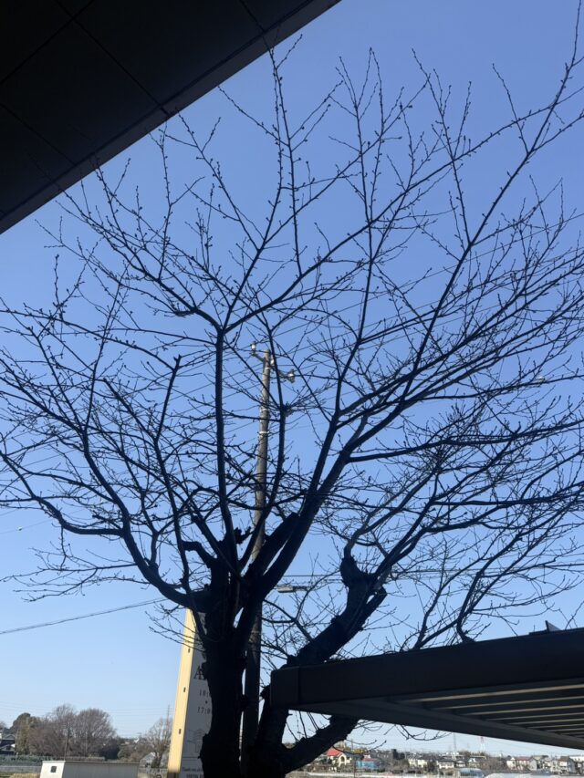 会社の敷地内にある桜の木を見上げてみると、枝にはたくさんのつぼみがついていました。 まだ花は咲いていませんが、少しずつふくらんできていて、春が近づいているのを感じます。